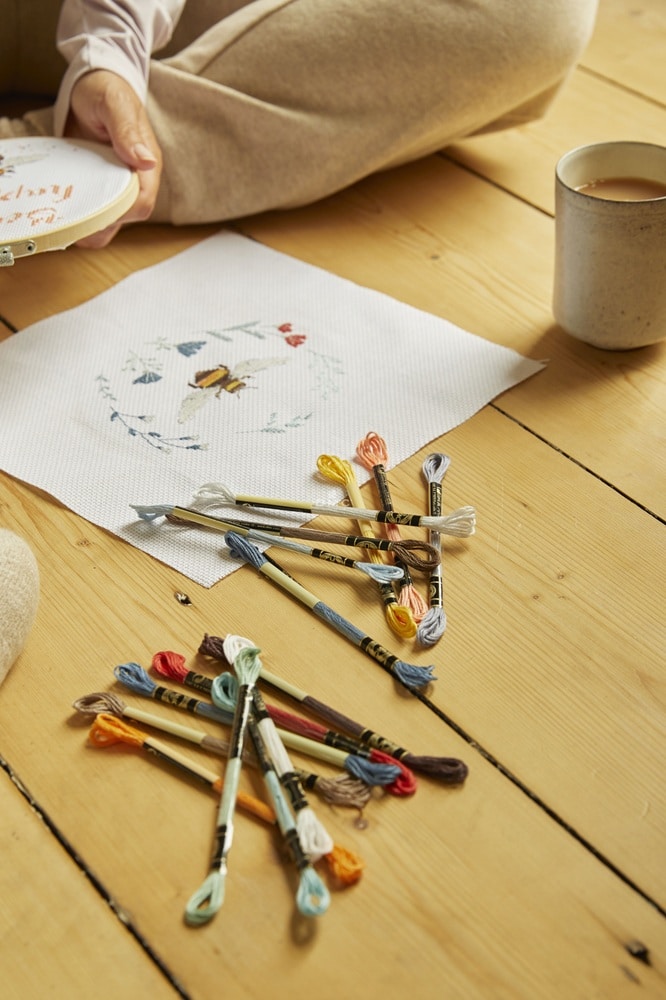 El ritmo repetitivo de la aguja, el vaivén del hilo y la elección consciente de cada tono nos devuelven al momento presente. Y en esa simplicidad, encontramos calma.