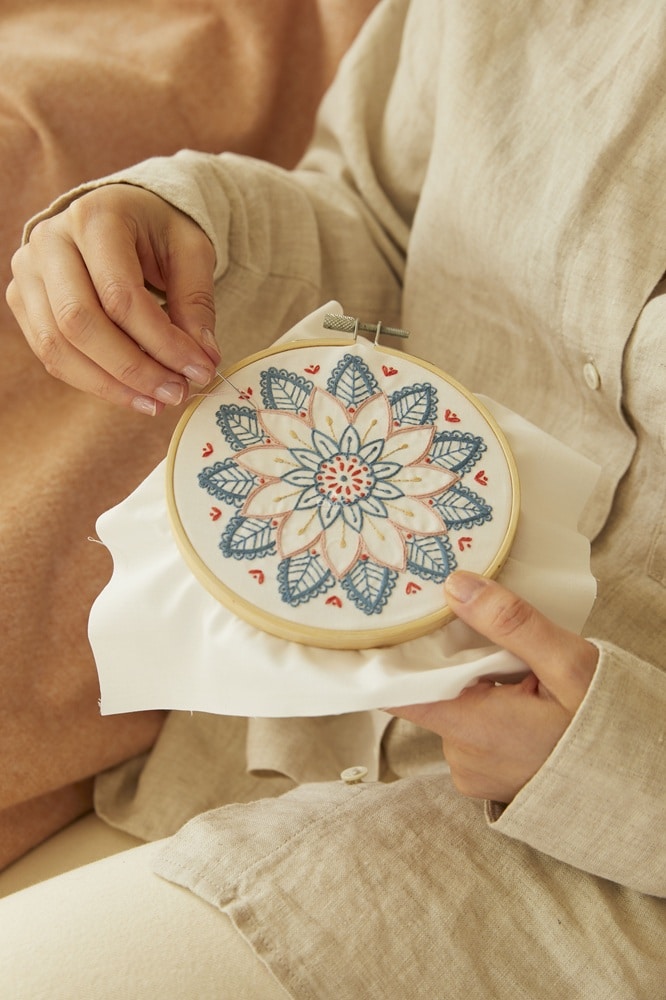 2. Focalización en el presente: Cuando estás bordando, debes prestar atención al punto, la tensión del hilo, los colores, y la tela. Eso te ancla al “aquí y ahora”.