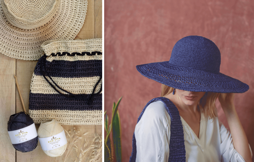 El crochet también vive en los detalles. Un bolso tejido con Eco Vita Raffia puede transformar un outfit sencillo en un look boho chic. Un sombrero, un chaleco ligero, o incluso unas sandalias personalizadas con Estambre Eco Vita añaden un toque vibrante y único.