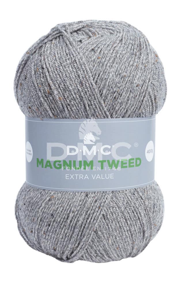 Con tan sólo una bola de Magnum Tweed podrás elaborar una prenda. Gama de elegantes tonos jaspeados de 400 g y 840 metros cada pieza. Este estambre de DMC está compuesto de 74% acrílico, 20% lana y 6% viscosa. Se recomienda trabajar con aguja y gancho de 5 mm. Por sus características este estambre es recomendable para prendas invernales.