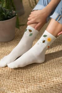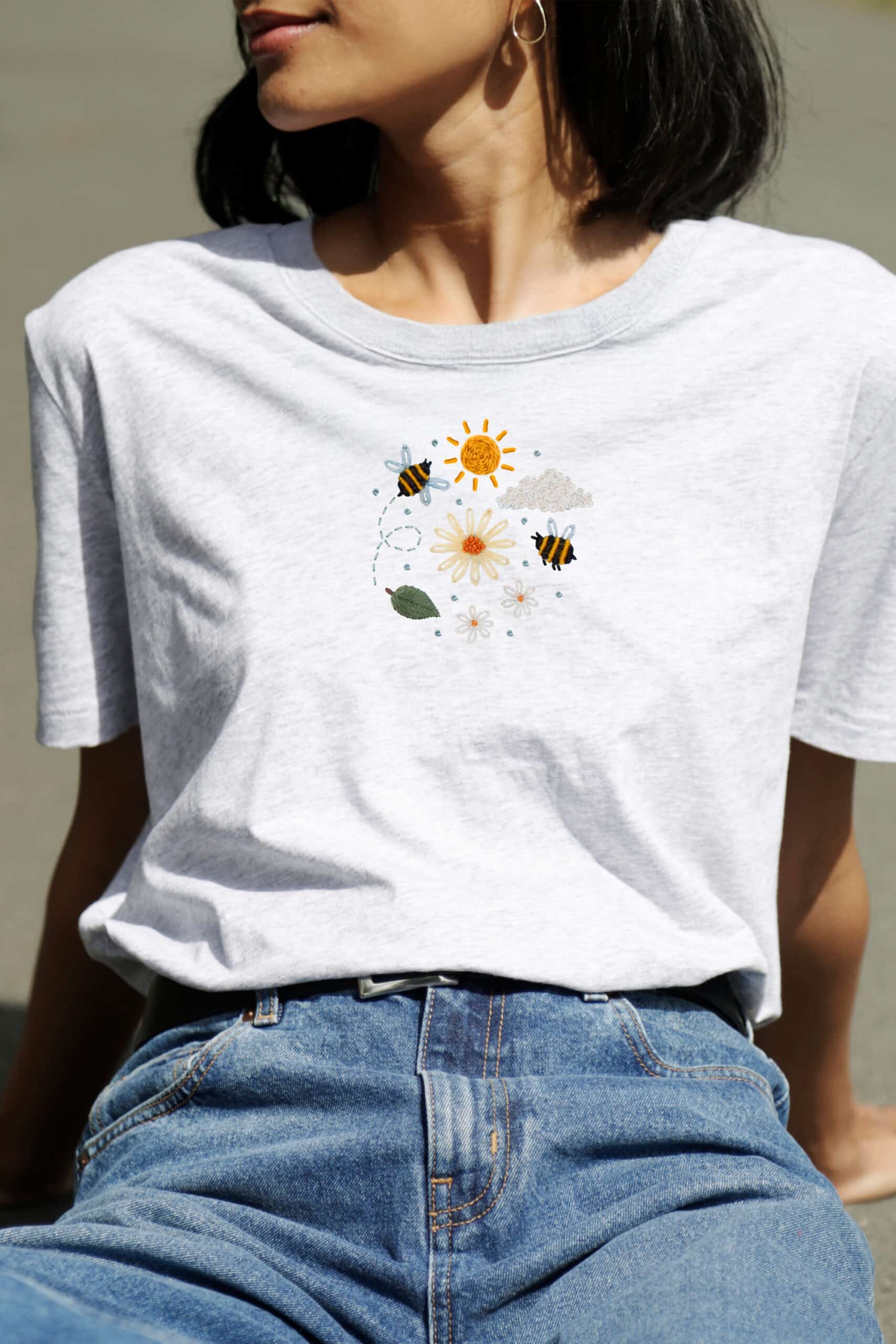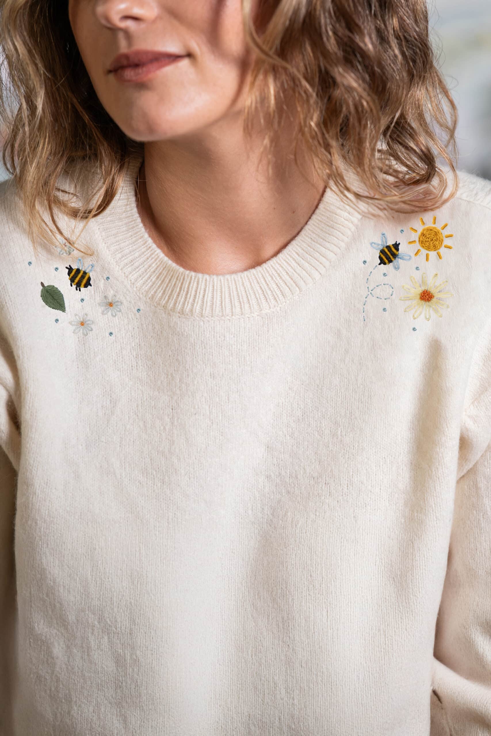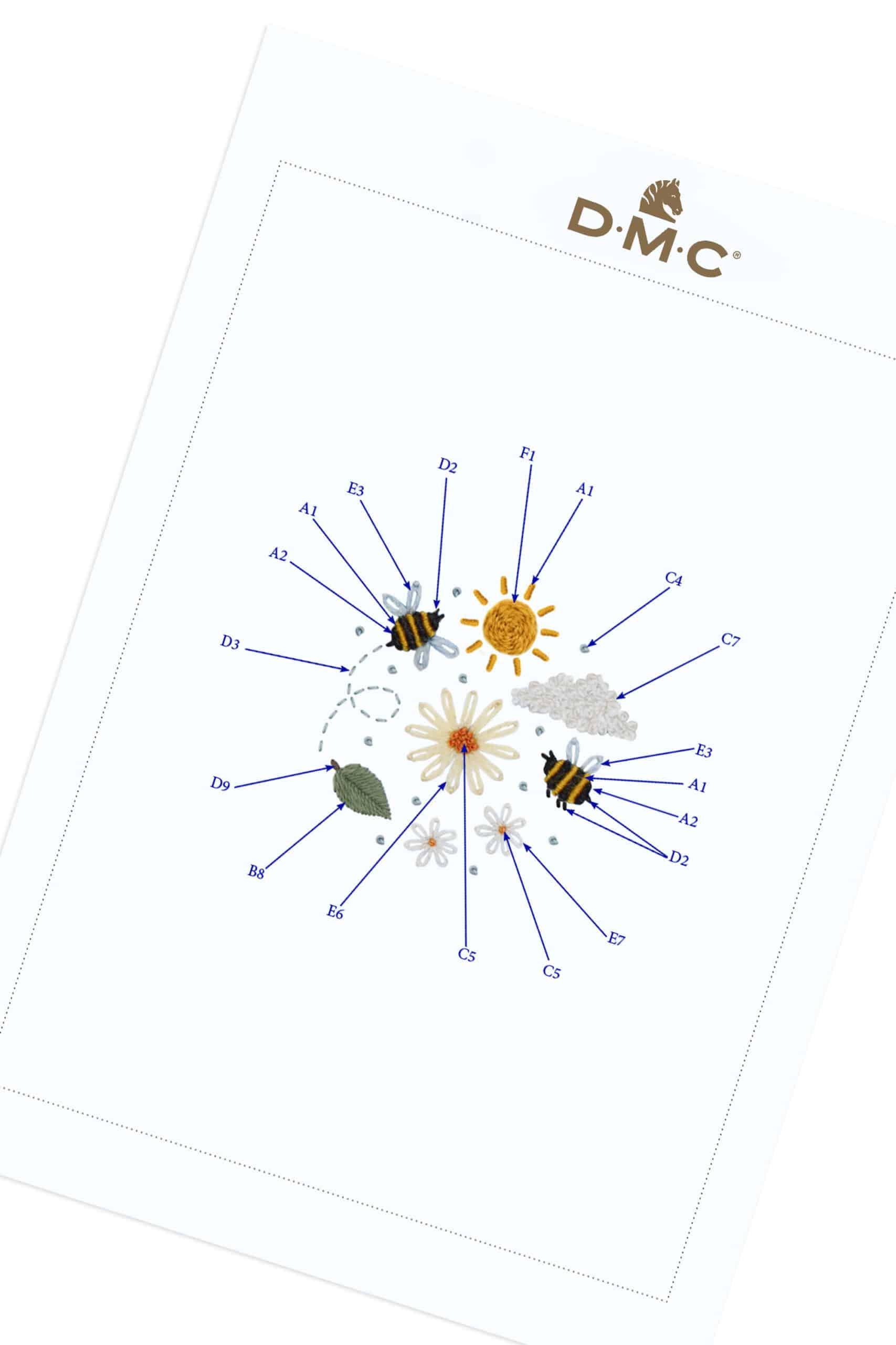 Este diseño de bordado incluye pequeños motivos inspirados en el verano, como abejas, flores y detalles ornamentales. Es ideal para personalizar cuellos, puños o calcetas, dándoles un estilo único. Para bordarlo, utiliza DMC Eco Vita, nuestro hilo de lana orgánica teñido con tintes naturales. Gracias a las instrucciones claras y a la calidad de nuestros materiales, llevar a cabo tu proyecto será sencillo. Además, los hilos DMC conservan su color y resistencia con el tiempo, asegurando que tu bordado se mantenga vibrante por generaciones.