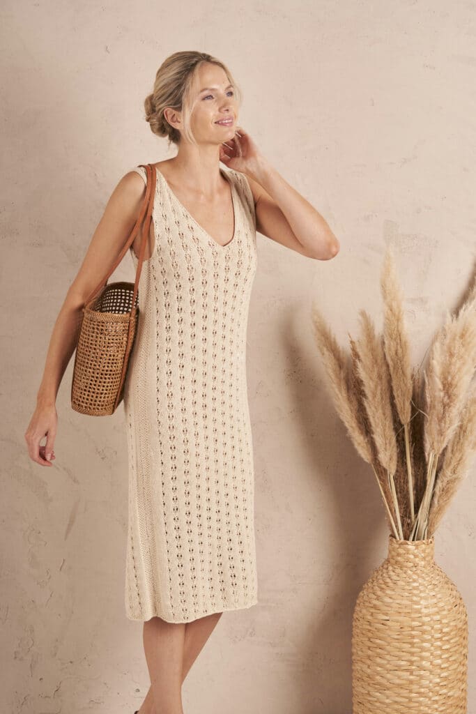 En tejido, la ligereza domina. El crochet y los puntos calados permiten que la prenda respire y funcionan con naturalidad en el entretiempo. Las fibras frescas como el algodón potencian esta sensación de fluidez y comodidad.