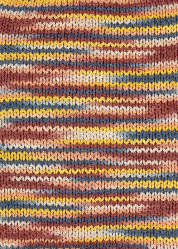 Este estambre, respetuoso con el medio ambiente, está compuesto de fibras 100% recicladas (de telas de desecho, retazos textiles y vestidos) que lo convierten en un hilo ecológico con certificación Oeko-Tex. Tiene una construcción tubular que le brindará a tus trabajos en punto y ganchillo un acabado único además de que te permitirá trabajarlo de una forma sencilla ya que no se abre ni se tuerce otorgándole estabilidad. Otras de sus cualidades es que tiene elasticidad, es suave al tacto, agradable para trabajar y tiene un toque fresco y natural como el lino. Se recomienda tejer con agujas o gancho de 4-5 mm.