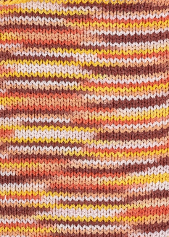 Este estambre, respetuoso con el medio ambiente, está compuesto de fibras 100% recicladas (de telas de desecho, retazos textiles y vestidos) que lo convierten en un hilo ecológico con certificación Oeko-Tex. Tiene una construcción tubular que le brindará a tus trabajos en punto y ganchillo un acabado único además de que te permitirá trabajarlo de una forma sencilla ya que no se abre ni se tuerce otorgándole estabilidad. Otras de sus cualidades es que tiene elasticidad, es suave al tacto, agradable para trabajar y tiene un toque fresco y natural como el lino. Se recomienda tejer con agujas o gancho de 4-5 mm.