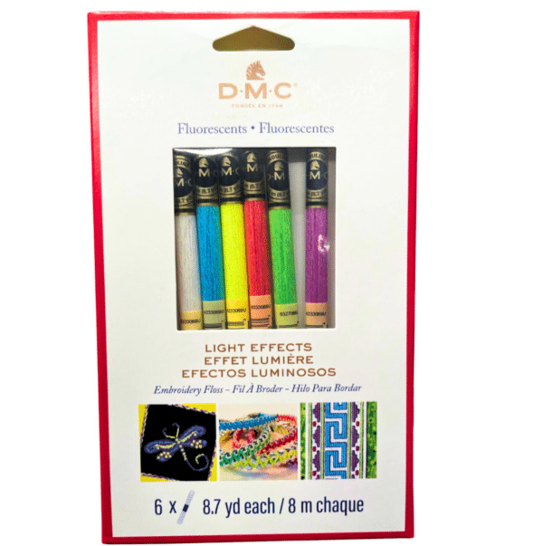 Los hilos metálicos Ligth Effects DMC se caracterizan por ser madejas de 6 hebras que se separan fácilmente y que tienen un brillo especial a lo largo de sus 8 m. No se destiñe y es resistente al deslustre.