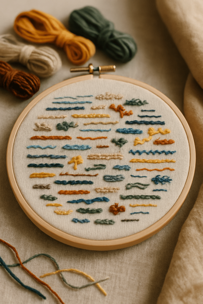 Este proyecto se ha convertido en un favorito porque combina creatividad, reflexión y constancia. La idea es bordar un pequeño motivo por mes: una flor que viste en un paseo, un símbolo que te representa en ese momento, algo que marcó tu estado de ánimo o incluso un color que predominó en tus días.