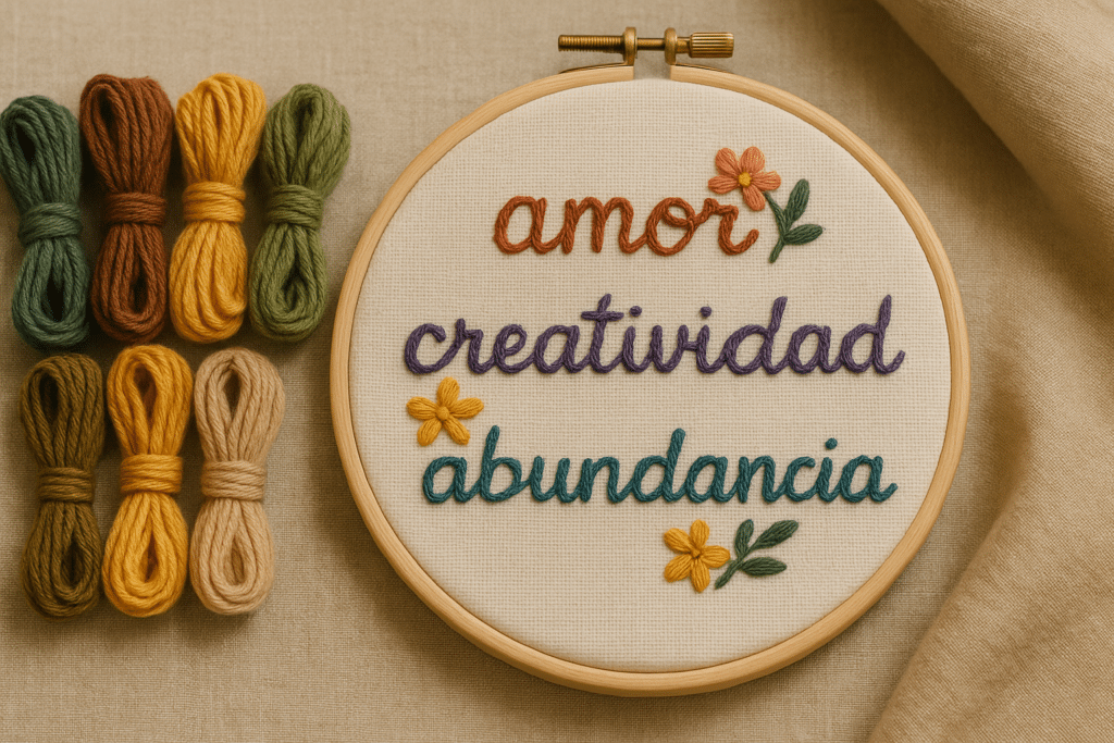 Puedes elegir palabras clave —como claridad, salud, amor, abundancia, paciencia— y convertirlas en diseños bordados que te acompañarán durante todo el año.