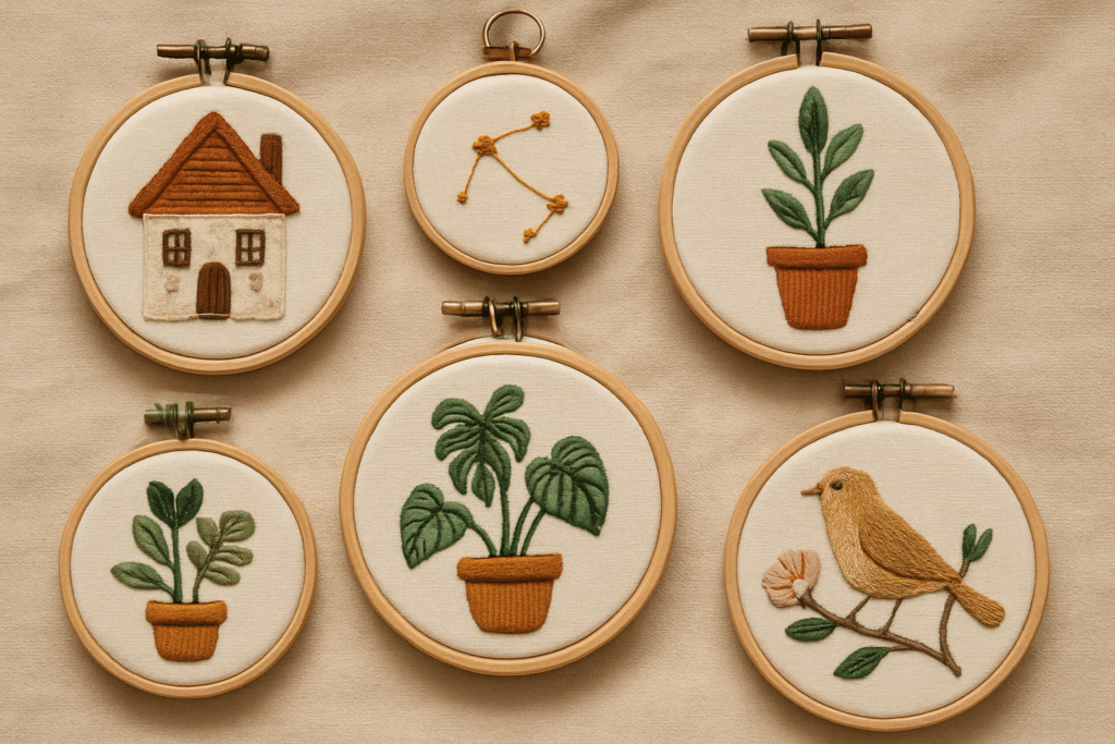 - En 12 mini bastidores, perfectos para decorar y también para regalar en el futuro.